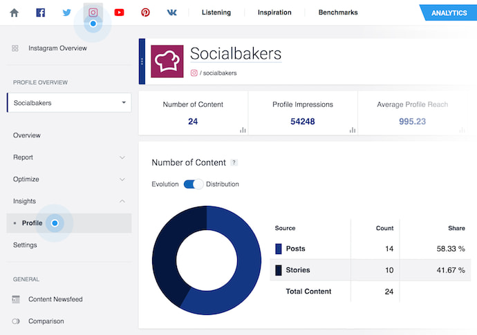 NapoleonCat is a social media management tool that you can use to manage and analyze your Instagram profile(s) alongside other social media accounts.