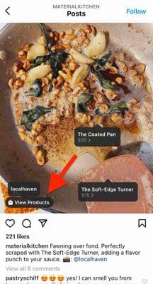 Shoppable posts are marked with a clickable shopping bag icon that displays the product information and the "View Products" call-to-action to visit the brand's Shop page.