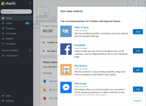 To do this, head to your Shopify admin and click on the "+" button located beside the "Sales Channels" heading.