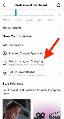 1. Go to your professional dashboard. Once there, click on "Set Up Instagram Shopping."